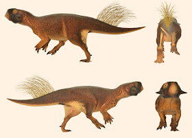 Otros medios simplemente se pasaron de ignorantes y declararon que este dinosaurio es el primero conocido con sus colores originales... ¡Palmazo en la cara! Aunque es cierto que el color de este bicho procede en gran medida del estudio de los melanosomas (pequeños cuerpos con pigmentos en la piel clic aquí para saber más al respecto), Psittacosaurus NO es el primer dinosaurio no aviano con coloración conocida. Hay muchos más que ya conocíamos desde antes, como Sinosauropteryx, Anchiornis (que por cierto aparece arriba en la imagen 2 de este post con dichos colores) y Microraptor.